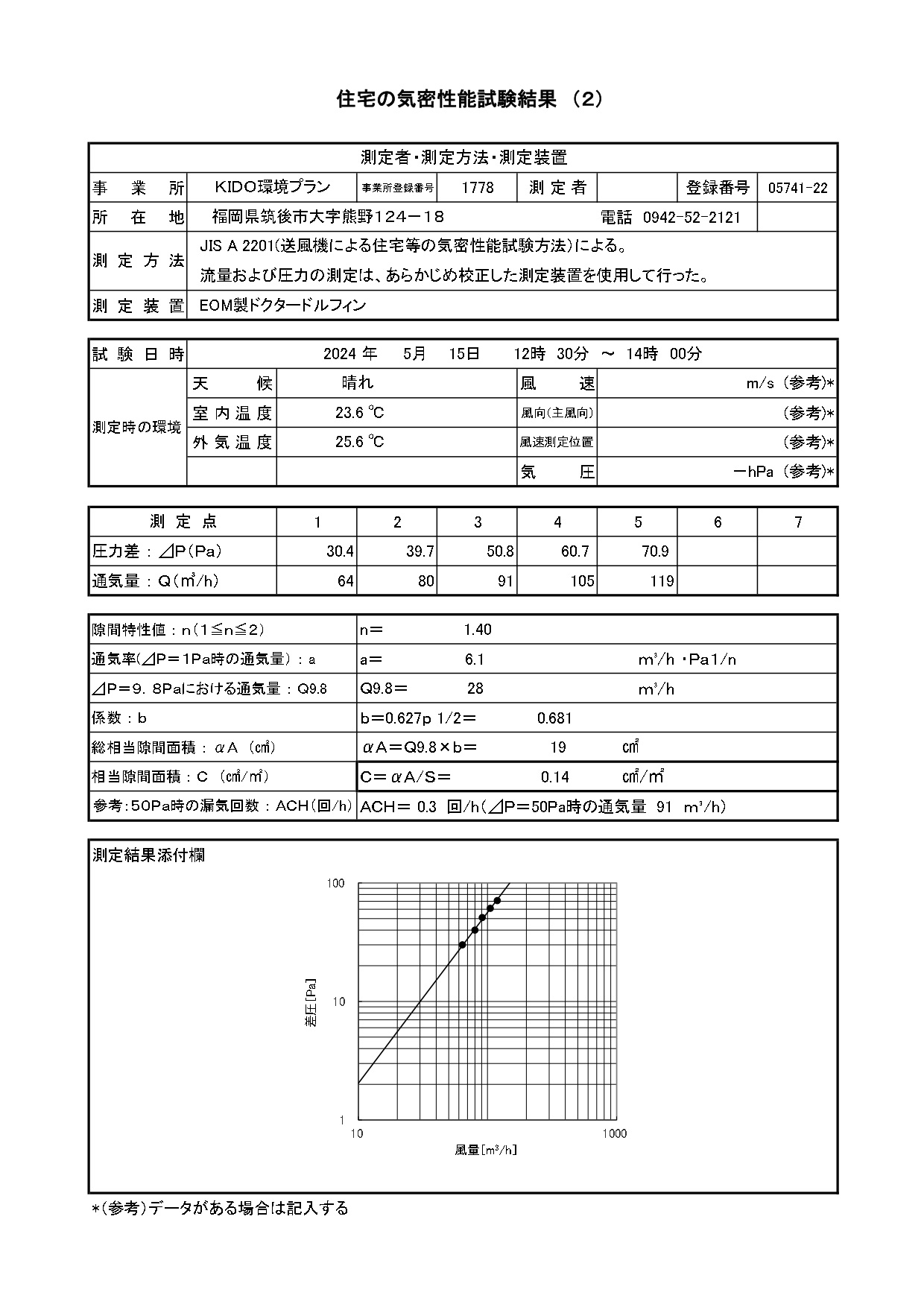 C値(隙間相当面積):0.14 ㎠/㎡ ※数字が0に近い程、隙間が少ない