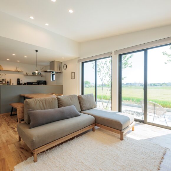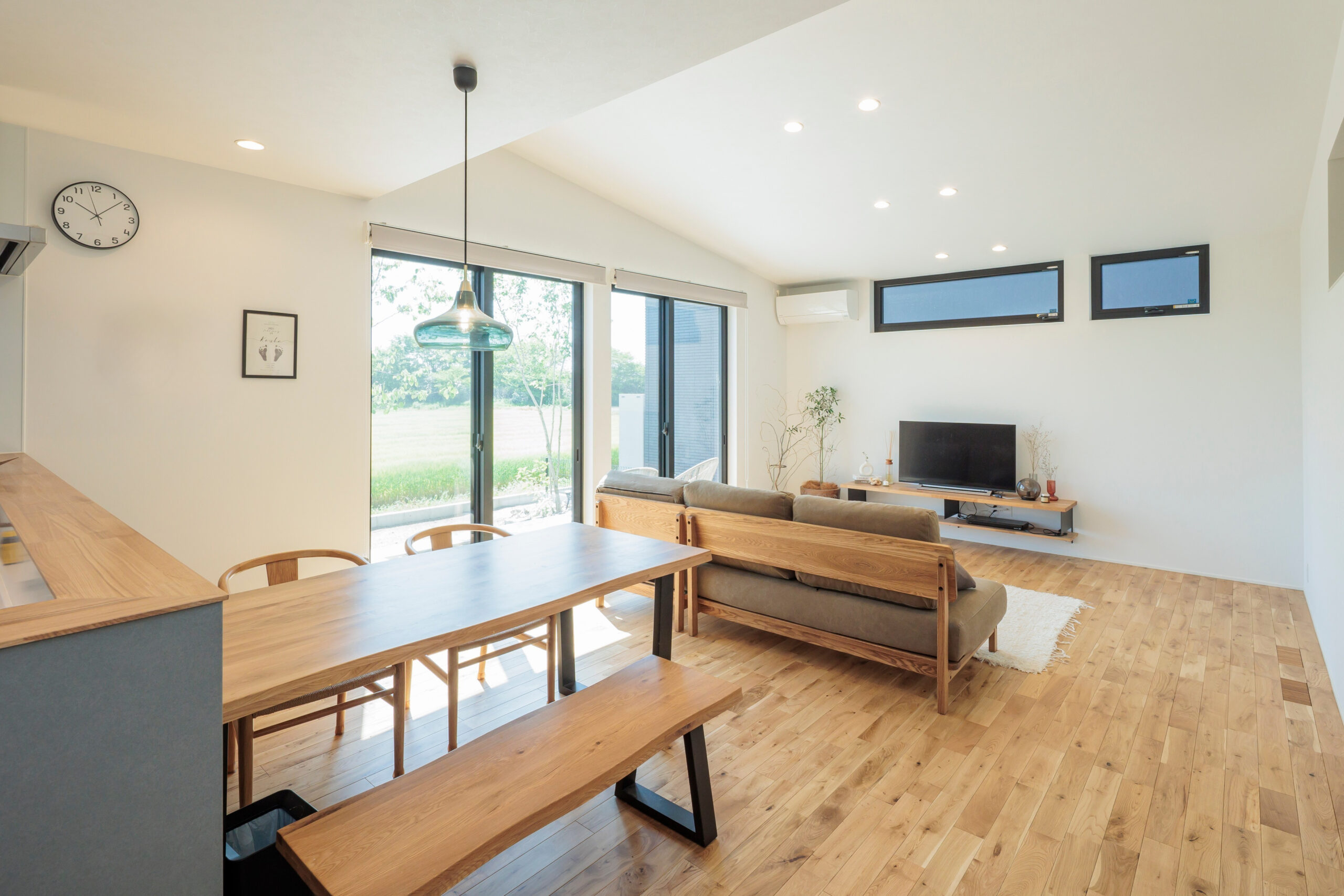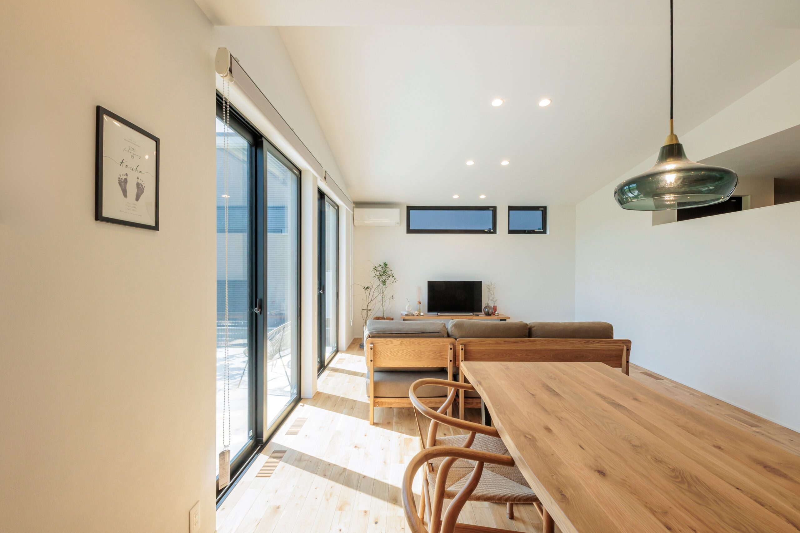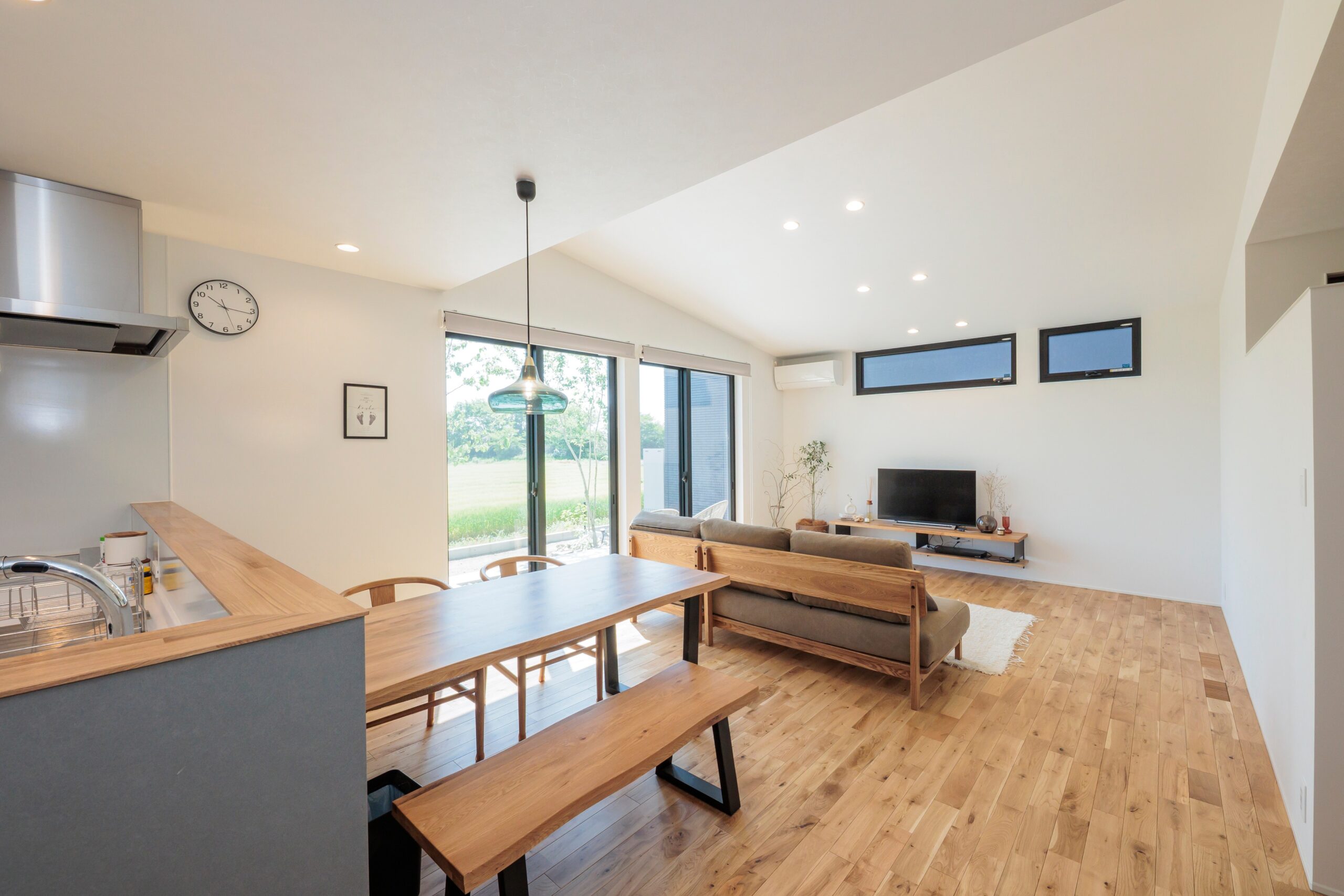 家族が集まり、自由に使える広々としたLDKは、明るい光が差し込み、リビング、ダイニング、キッチンが一体となる心地よい空間です。