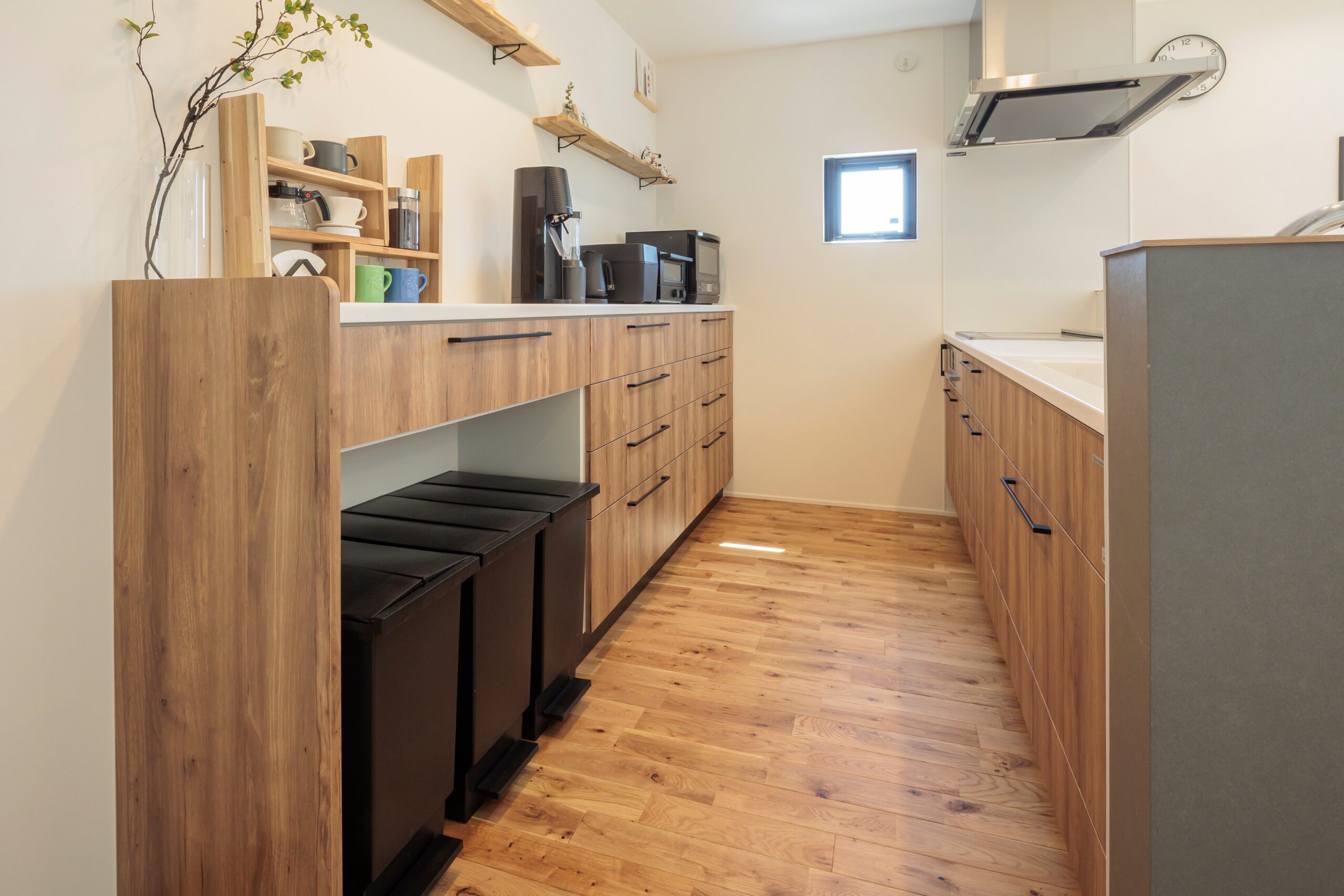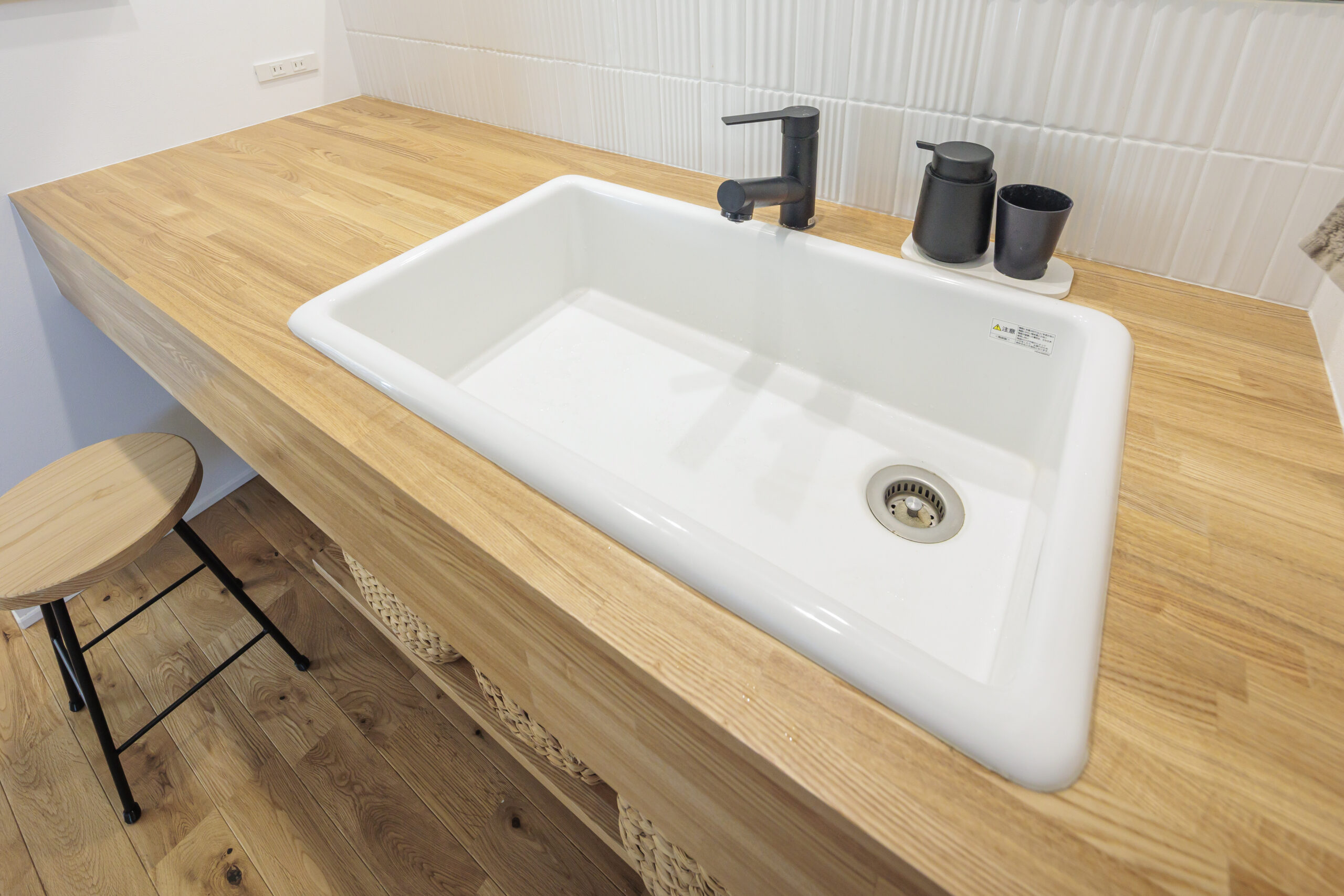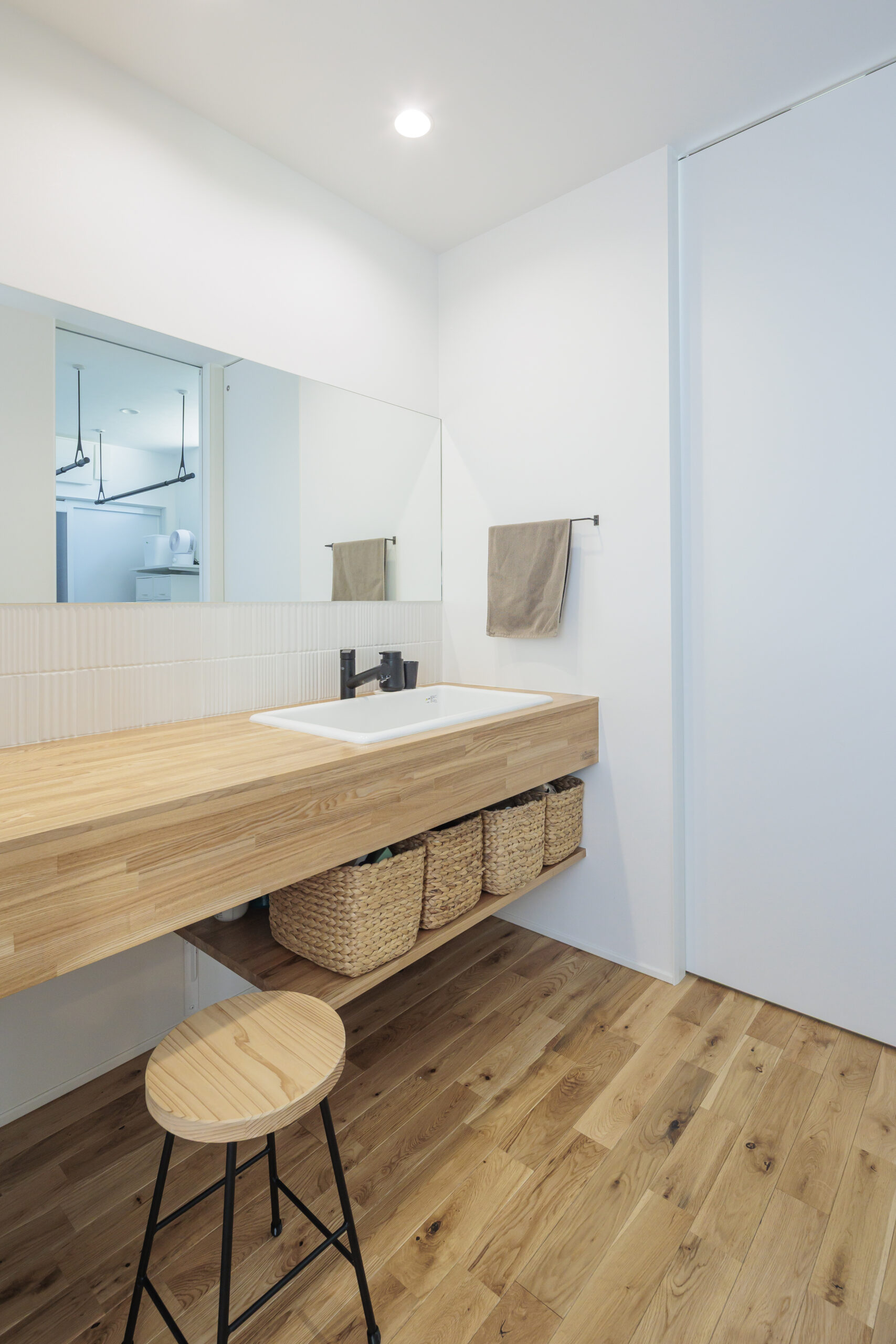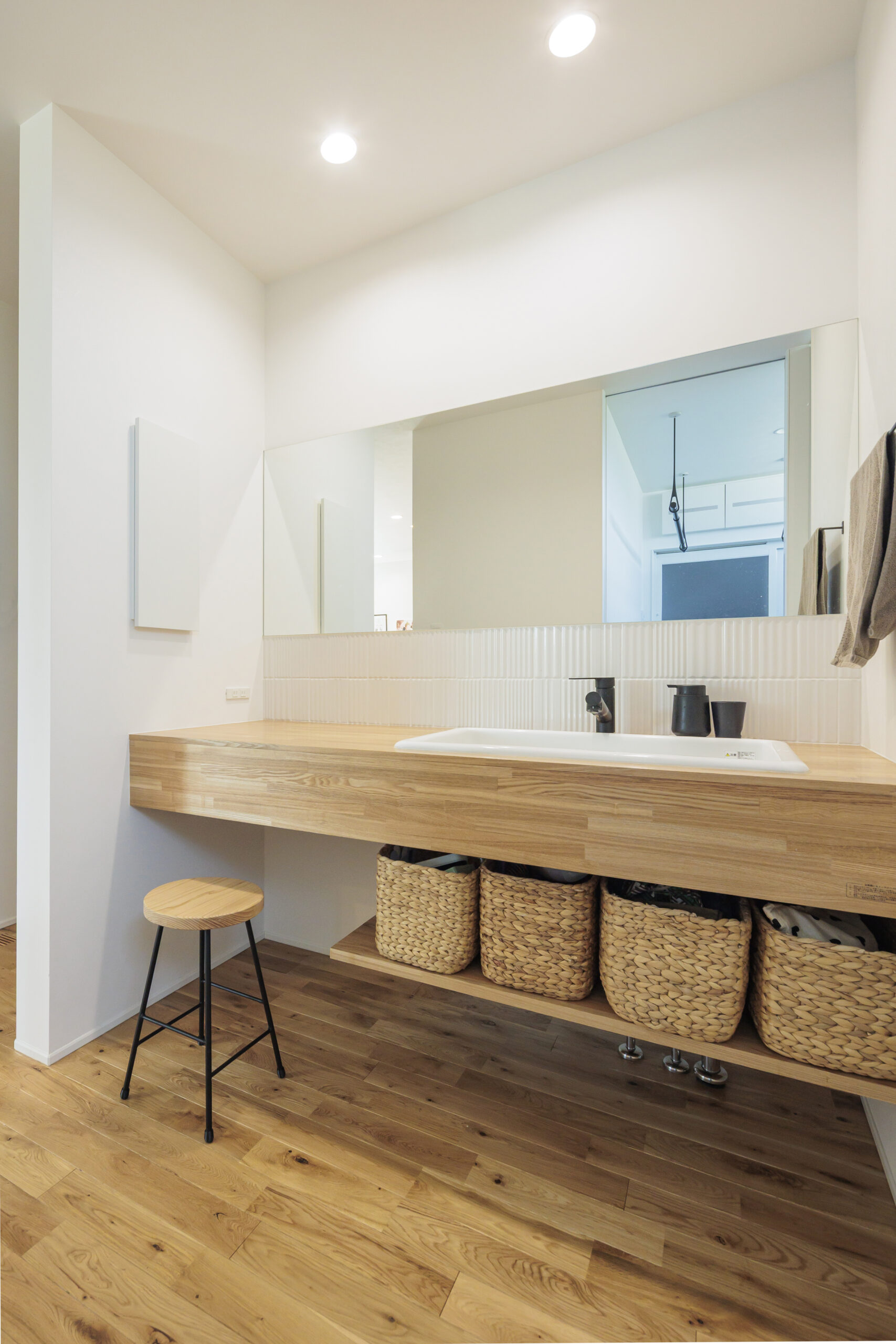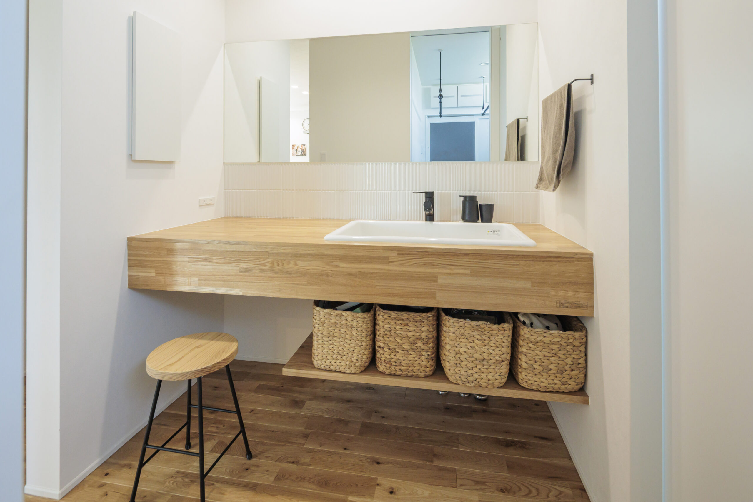 家事や日常生活がスムーズに行える水回り動線は、キッチン、浴室、洗面台が効率よく配置され、寝室や子供部屋へも通じる間取りで快適さを提供します。